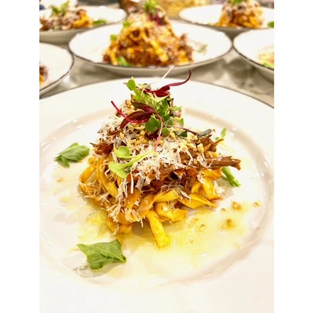 Short Rib Ragu with Linguine, Fried Garlic & Basil Oil